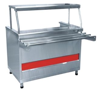 Время разогрева конфорки до рабочей температуры: 20мин. Количество конфорок: 2х220мм, с регулировкой мощности. Полка над мармитом служит для выкладки порционных блюд и имеет лампу подсветки. Направляющие для подносов и регулируемые по высоте ножки входят в комплект поставки.