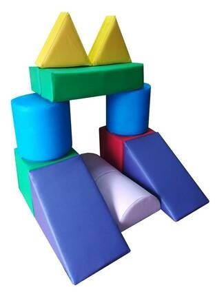 куб – 2 шт. брус – 2 шт. треугольник – 2 шт. горка – 2 шт. цилиндр – 2 шт. полуцилиндр – 2 шт. куб 30*30*30 см. брус 60*15*15 см. треугольник 30*30*10 см. горка 45*30*30 см. цилиндр D 30*30 см. полуцилиндр R 15*30 см.