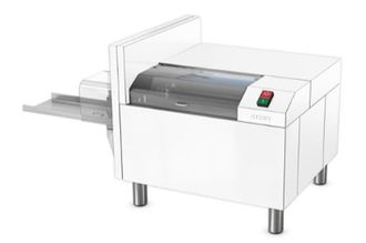 Хлеборезка АХМ-300А способна нарезать батон и формовой хлеб длиной до 380 мм, шириной до 160 мм. Производительность при толщине нарезаемых ломтей:
