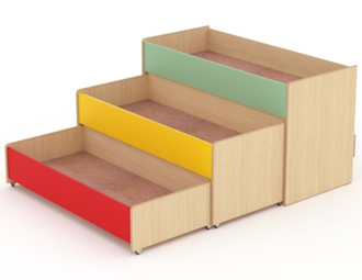 ЛДСП 16 мм, на спинках противоударный врезной кант 2 мм, на остальных деталях кромка 0,4 мм. Задние бортики кроватей выступают, что при выдвижении позволяет кроватям цепляться друг за друга. Нижние части опор(боковин) кроватей оборудованы колесными опора.