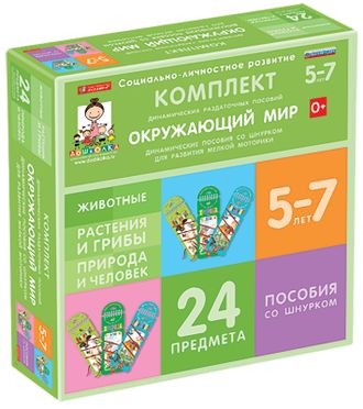 НО-5366-10 Комплект динамических раздаточных пособий со шнурком. Окружающий мир. (3 вида по 8 шт.) Животные, Природа и человек, Растения и грибы.