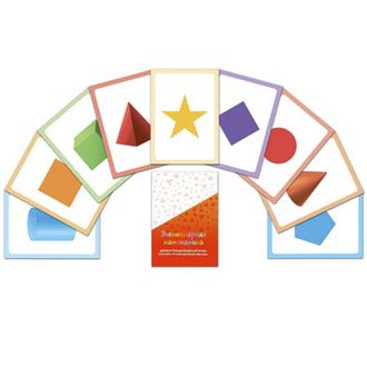- 6 демонстрационных карточек с изображением наиболее часто встречающихся объемных геометрических тел, окрашенных в разные цвета;