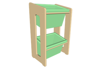 Система хранения сделана из березовой фанеры и массива березы. Размер: 630*390*270 мм. Толщина фанеры 15 мм. Поставляется в разобранном виде. Цвет: лак. Размер контейнеров: 348x232x210 мм - 2 шт.
