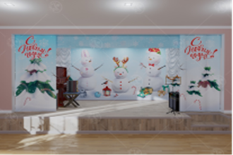 Занавес для сцены "Три снеговика" состоит из четырех полотен: