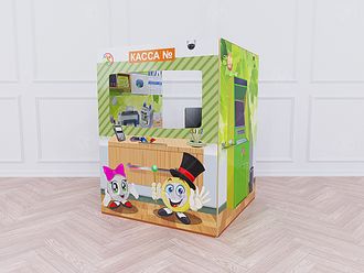 Игровой модуль "Касса банка" выполнен из МДФ с нанесением полноцветного рисунка и ламинацией снаружи и внутри изделия.