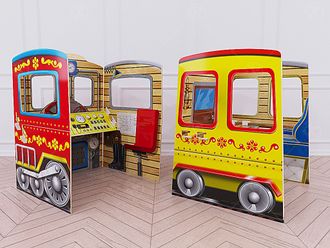 Игровой модуль "Паровоз и вагон" выполнен из МДФ с нанесением полноцветного рисунка и ламинацией снаружи и внутри изделия.
