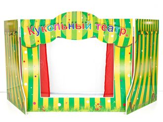 Настольный кукольный театр предназначен для развития творческих способностей дошкольников. Ширма для кукольного театра оснащена занавесом, она мобильна, удобна в использовании, имеет оптимальный размер и легко помещается на небольших детских столиках. Данная модель выполнена в желто-зеленой цветовой гамме. Высота кукольного театра 0,65м, ширина центральной створки 0,7м.