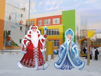 Высота Деда Мороза - 1,8м, высота Снегурочки 1,6м.