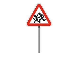 Знак ПДД "Дети" выполнен из прочного пластика на ноге из профильной окрашенной трубы.