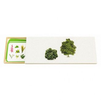 Цель: Материал помогает пополнить словарный запас ребёнка и обобщить новые понятия по теме «Жизненные формы растений». Ребенок сортирует растения по типам, затем сверяется по проверочной карточке. Ребенок узнает разные формы растений: деревья, кустарники и травы. Названия растений для родителей или педагогов написаны на упаковке.
