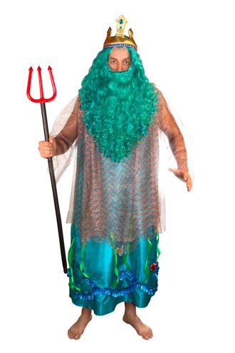 Голубой, р-р 48-52; комплект: головной убор, парик, борода, платье, трезубец