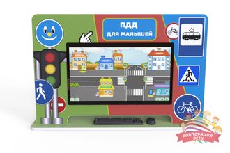 Комплекс включает в себя сенсорный монитор 24", 27", 32" (на выбор), различные игровые задания, интерактивные учебные материалы, модели, реалистичные симуляторы дорожной ситуации, что позволяет детям не просто учить правила, но и воплотить их на практике. Это помогает им лучше понять ПДД, научиться принимать правильные решения в различных ситуациях.