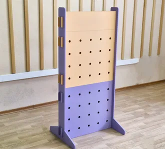 В составе КОНСТРУКТОРА ИГРОВЫХ ШИРМ для ДОУ вы найдете перфорированные панели различных размеров и вертикальные стойки для их установки. К панелям можно крепить дополнительное оборудование, тем самым превращая конструкцию в различные функциональные предметы.