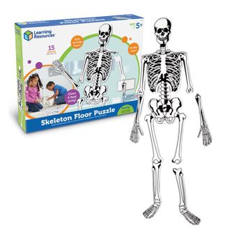 С помощью набора дети будут изучать человеческое тело, собирая головоломку в натуральную величину. В процессе игры вы можете предложить детям лечь поверх завершенной головоломки и сравнить скелет с их собственными телами.