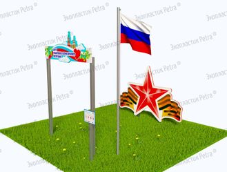 Патриотическая площадка "Центр нравственно-патриотического воспитания юных патриотов" из Экопластика Petra ® и нержавеющей стали. Комплект: Экстра 2