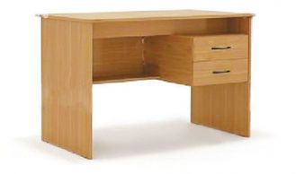 Стол изготовлен из ЛДСП 16 мм, обработан кромкой ПВХ. Стол имеет тумбу с двумя выдвижными ящиками. Углы столешницы скруглены. Все офисная и детская мебель сертифицирована.