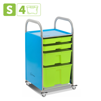SS004S "Мобильный стеллаж S с 4 контейнерами 1126х410х475 мм 2 малых, 1 средний, 1 большой контейнер"